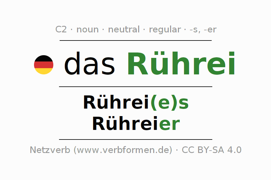 - Plural: die Rühreier, der Rühreier, den Rühreiern, die Rühreier