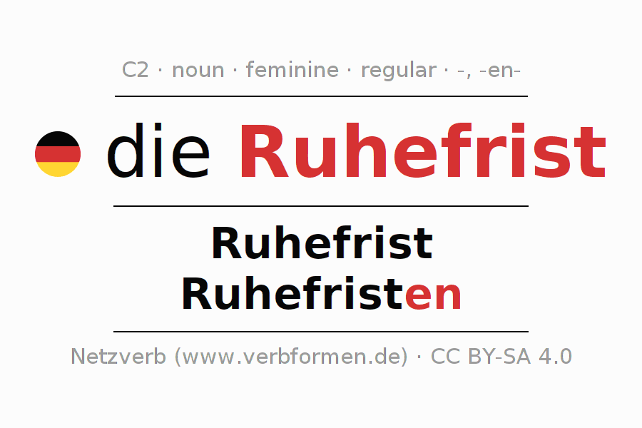 - Singular: die Ruhefrist, der Ruhefrist, der Ruhefrist, die Ruhefrist