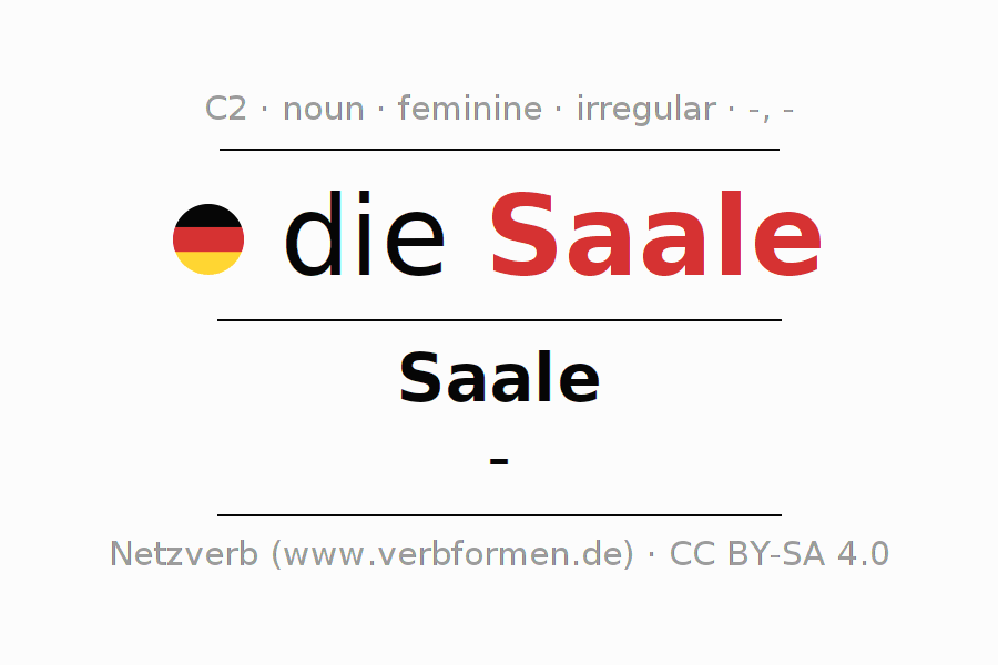 The declension of Saale as a table with all forms in singular (singular) and plural (plural) and in all four cases nominative (1st case), genitive (2nd case), dative (3rd case) and accusative (4th case). Especially for German learners the correct declension of the word Saale is crucial.