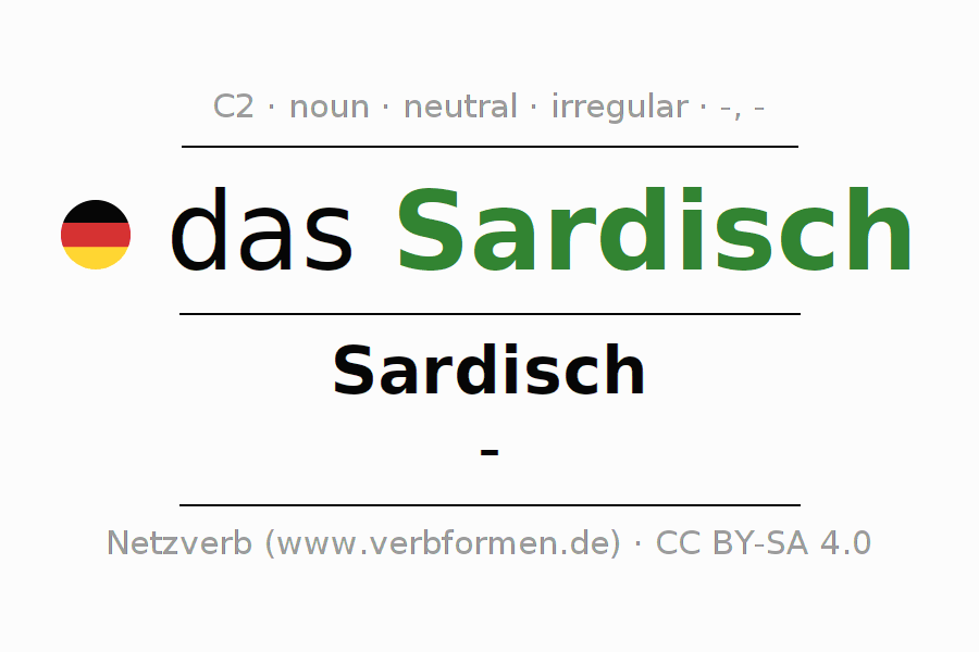 - Singular: das Sardisch, des Sardisch, dem Sardisch, das Sardisch
