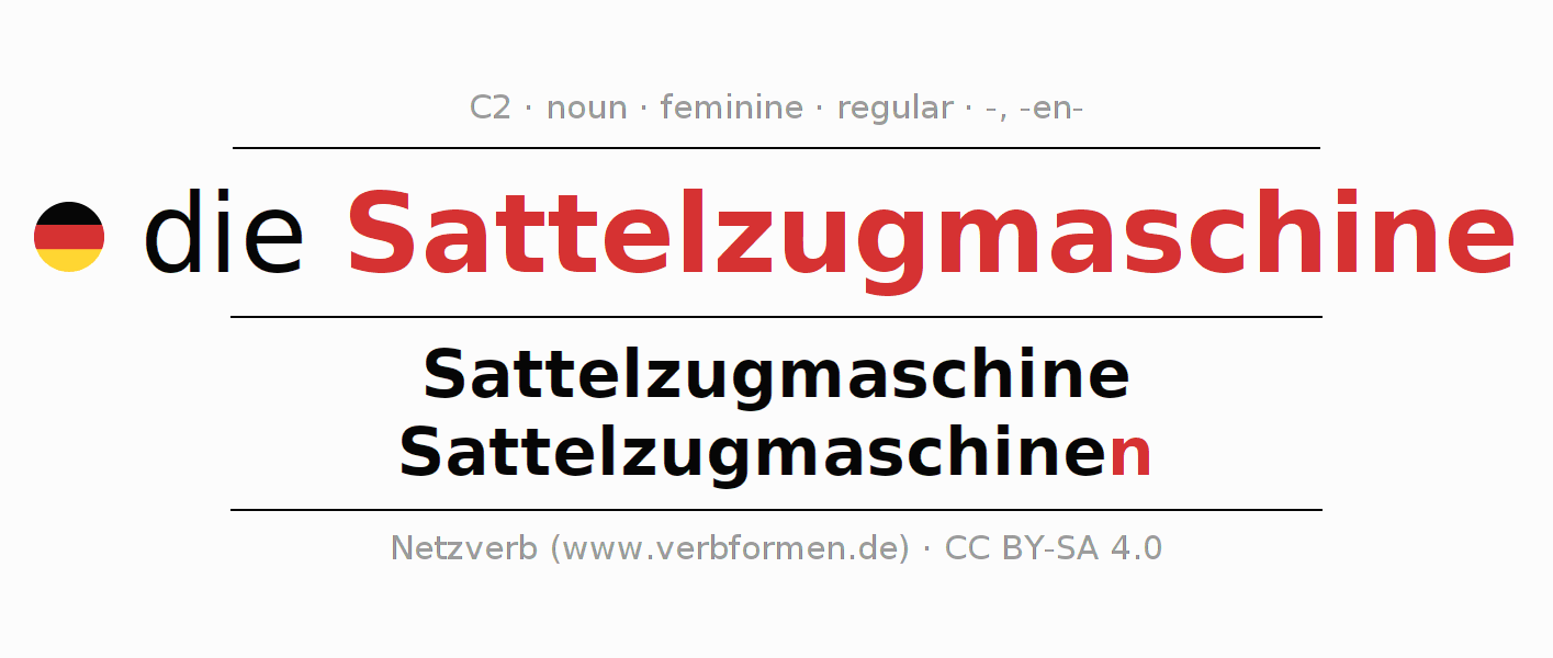 - Singular: die Sattelzugmaschine, der Sattelzugmaschine, der Sattelzugmaschine, die Sattelzugmaschine