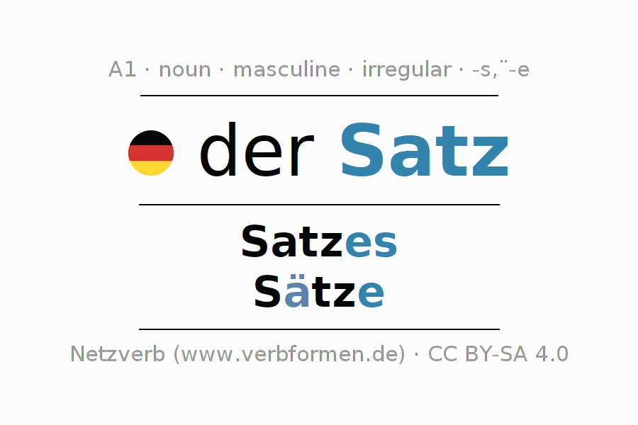 - Plural: die Sätze, der Sätze, den Sätzen, die Sätze