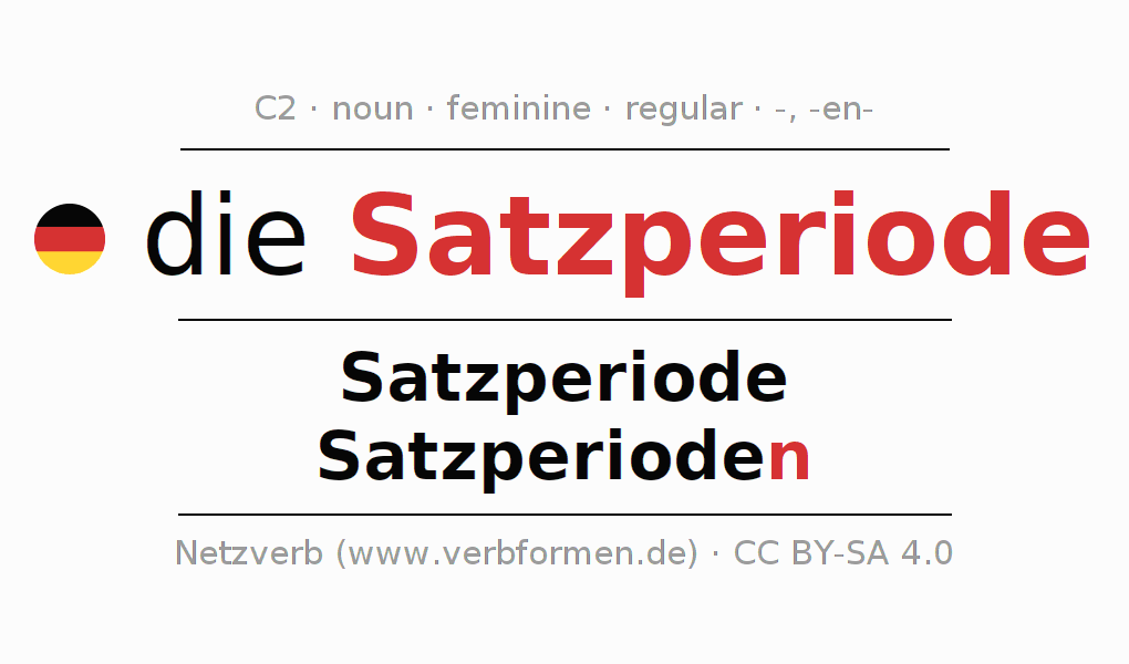 - Singular: die Satzperiode, der Satzperiode, der Satzperiode, die Satzperiode