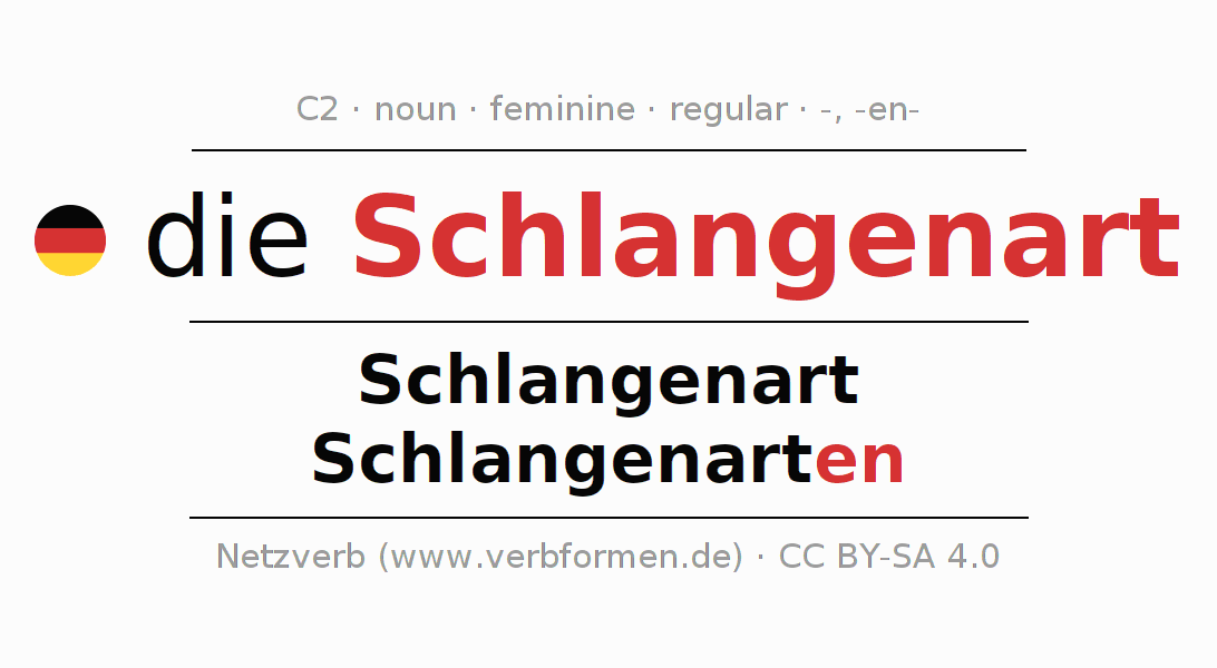 - Singular: die Schlangenart, der Schlangenart, der Schlangenart, die Schlangenart