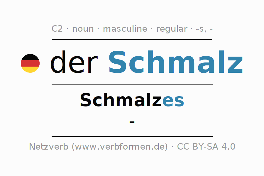 - Singular: der Schmalz, des Schmalzes, dem Schmalz(e), den Schmalz