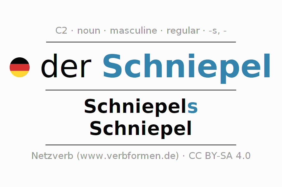 - Singular: der Schniepel, des Schniepels, dem Schniepel, den Schniepel