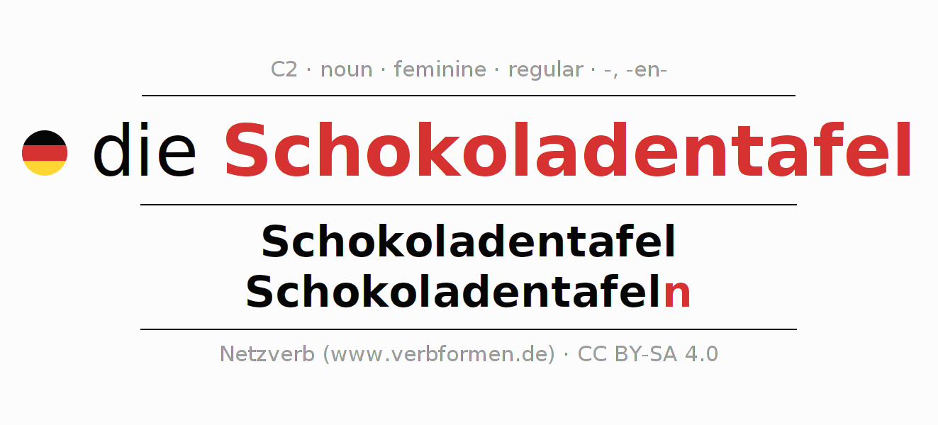 - Singular: die Schokoladentafel, der Schokoladentafel, der Schokoladentafel, die Schokoladentafel