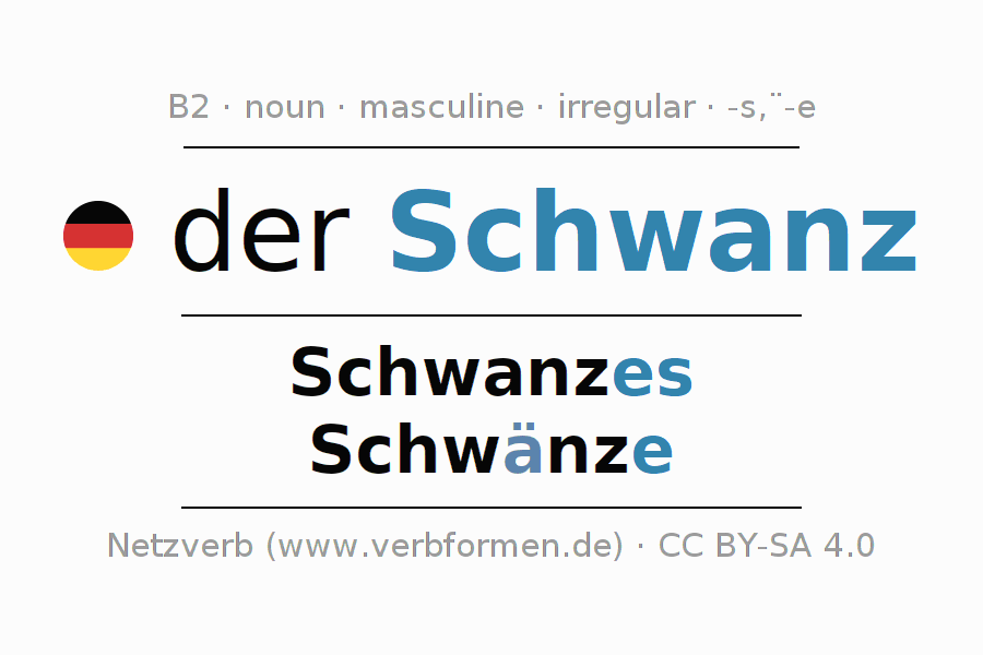 - Singular: der Schwanz, des Schwanzes, dem Schwanz(e), den Schwanz