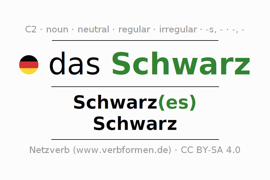 - Singular: das Schwarz, des Schwarz(es), dem Schwarz(e), das Schwarz