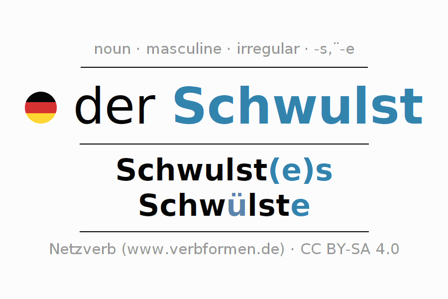 | Nom. | der Schwulst | die Schwülste |