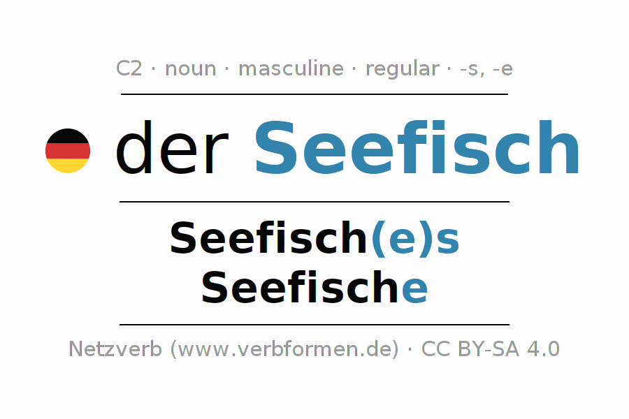 - Singular: der Seefisch, des Seefisch(e)s, dem Seefisch(e), den Seefisch