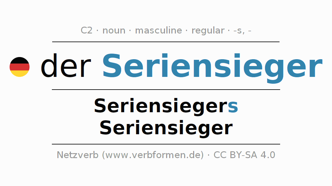 - Singular: der Seriensieger, des Seriensiegers, dem Seriensieger, den Seriensieger