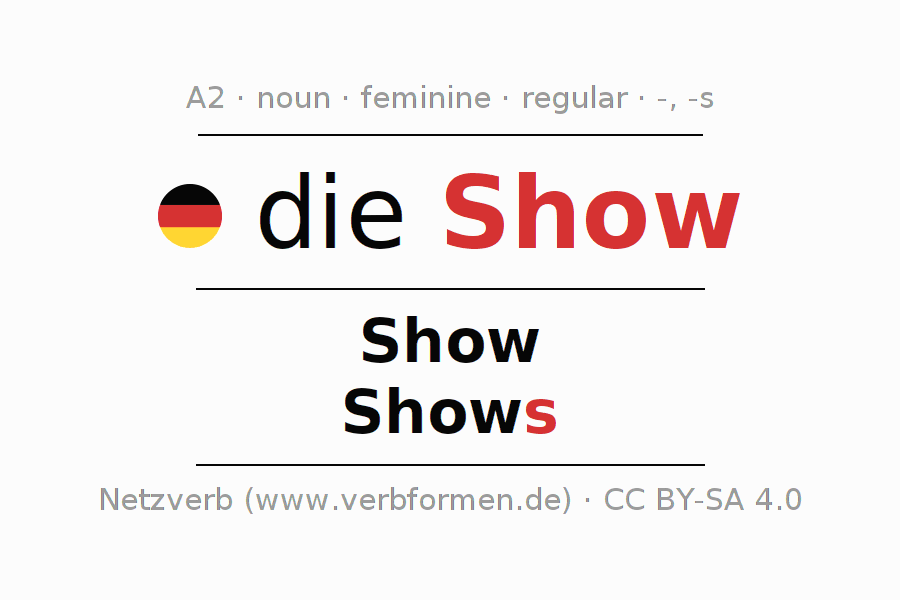 - Plural: die Shows, der Shows, den Shows, die Shows