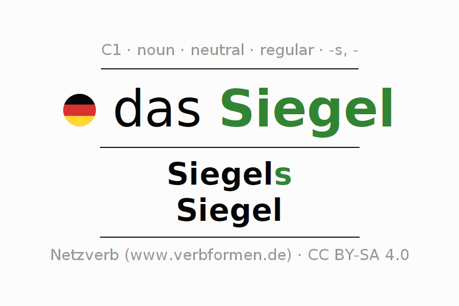 - Plural: die Siegel, der Siegel, den Siegeln, die Siegel