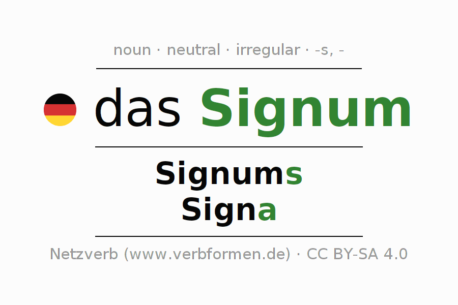 - Singular: das Signum, des Signums, dem Signum, das Signum
