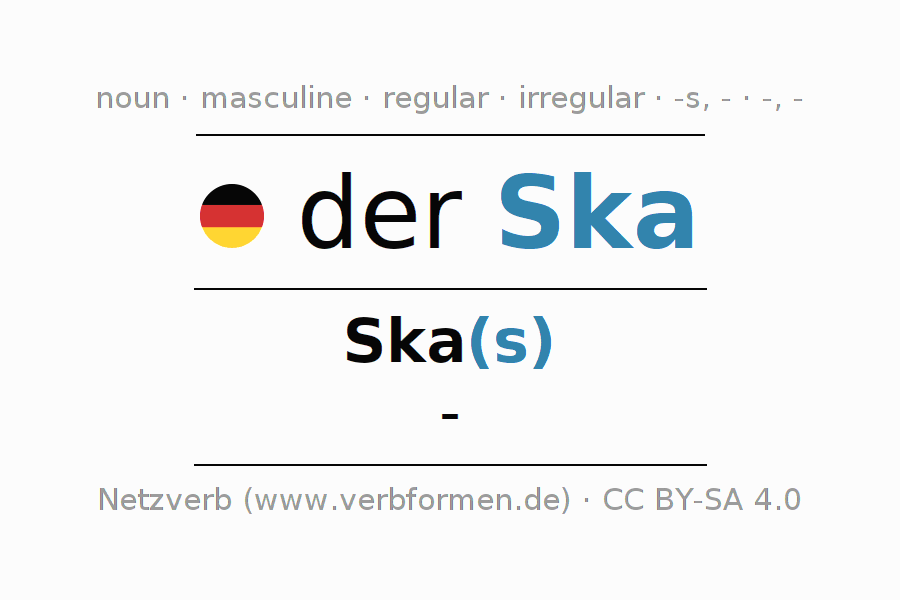 - Singular: der Ska, des Ska(s), dem Ska, den Ska