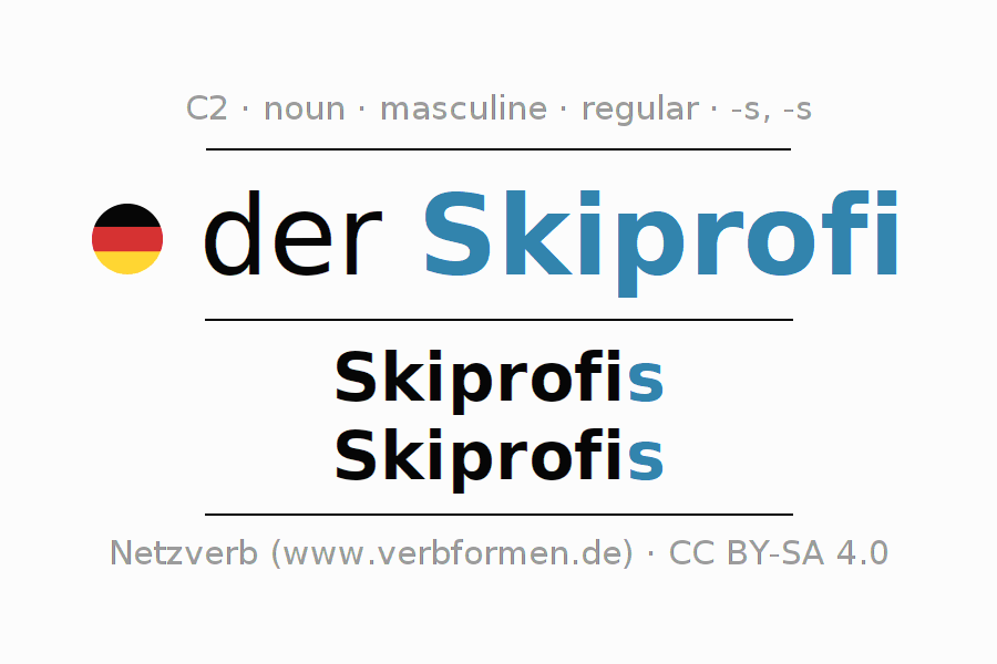 - Singular: der Skiprofi, des Skiprofis, dem Skiprofi, den Skiprofi