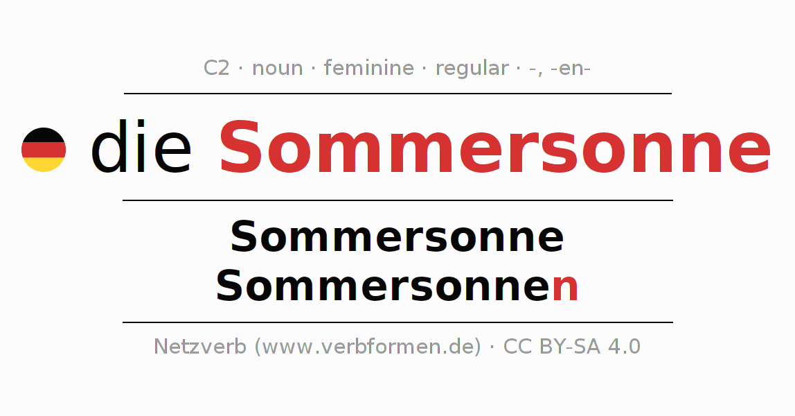 - Singular: die Sommersonne, der Sommersonne, der Sommersonne, die Sommersonne