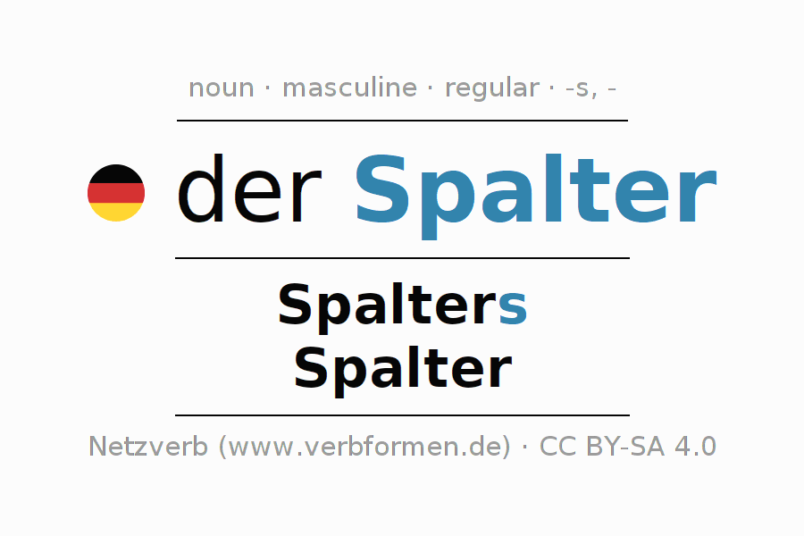 - Plural: die Spalter, der Spalter, den Spaltern, die Spalter
