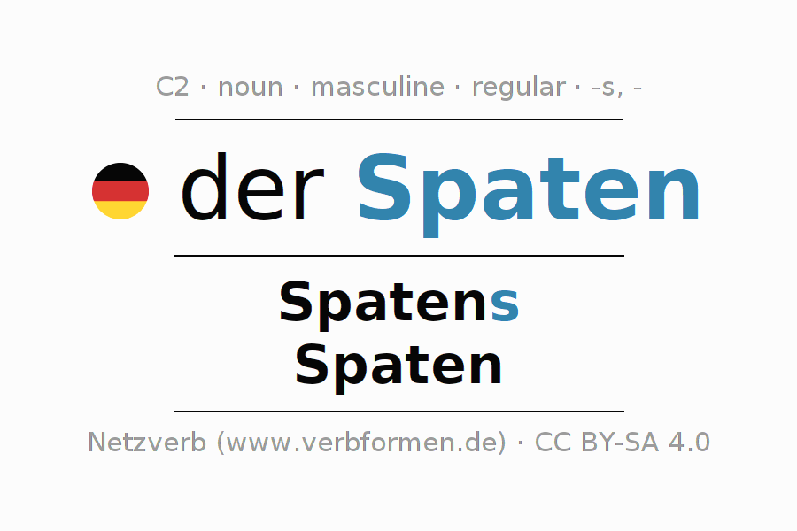 - Singular: der Spaten, des Spatens, dem Spaten, den Spaten