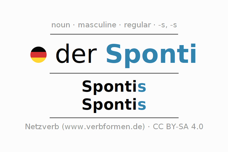 - Singular: der Sponti, des Spontis, dem Sponti, den Sponti