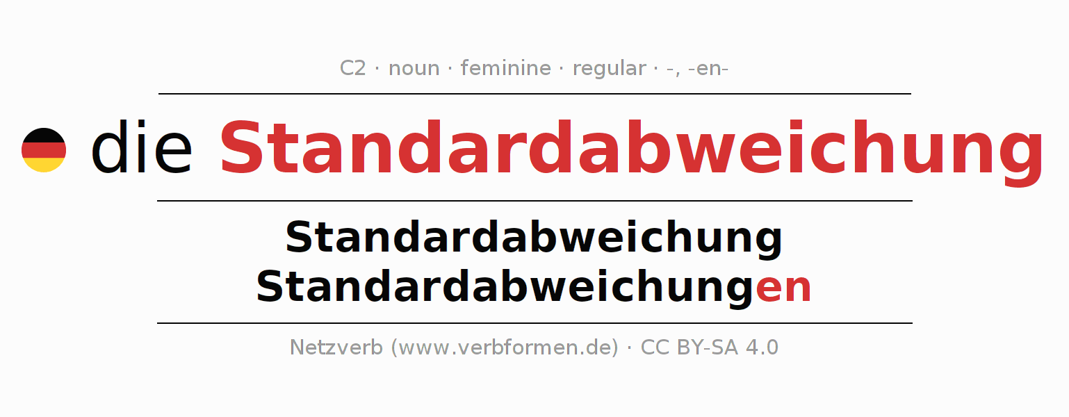 - Singular: die Standardabweichung, der Standardabweichung, der Standardabweichung, die Standardabweichung