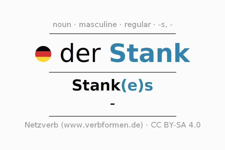 - Singular: der Stank, des Stank(e)s, dem Stank(e), den Stank