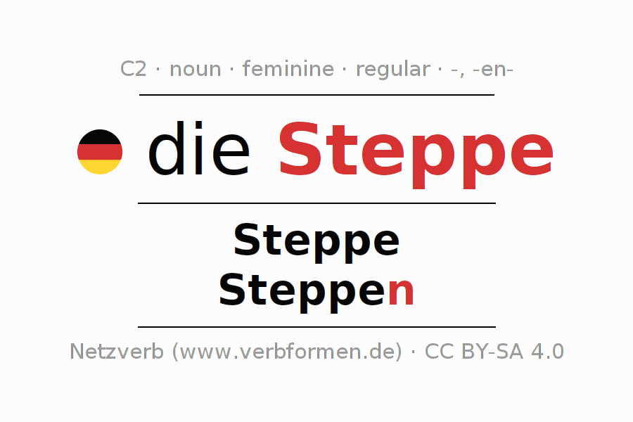 - Singular: die Steppe, der Steppe, der Steppe, die Steppe