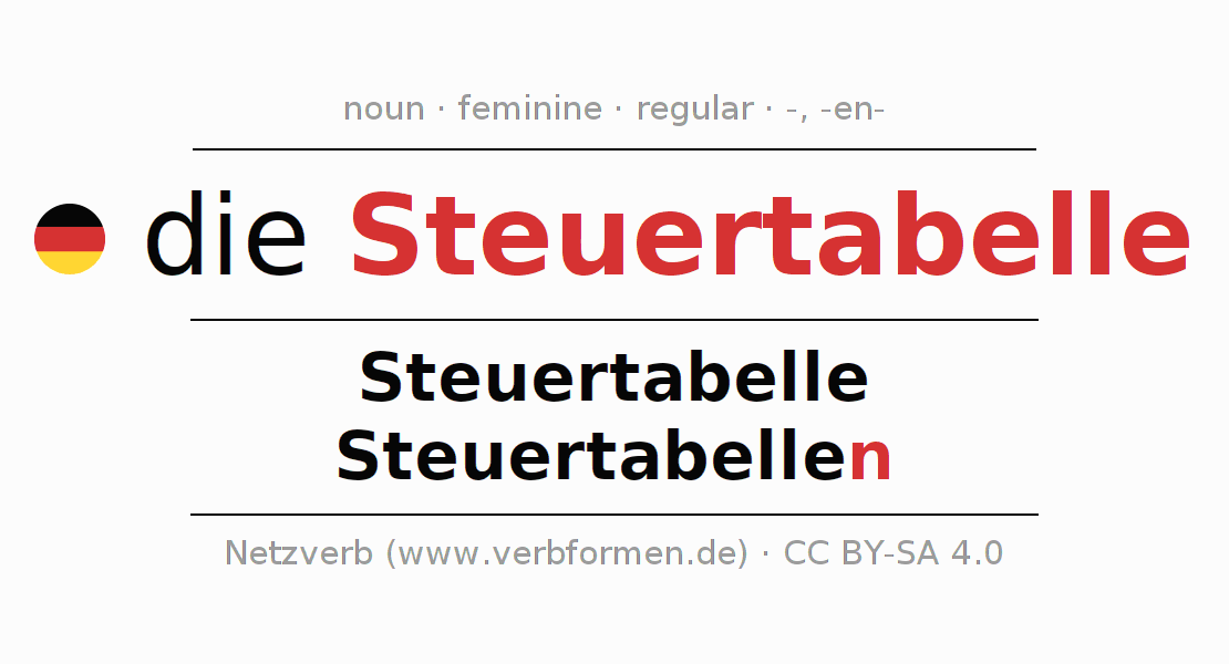 - Singular: die Steuertabelle, der Steuertabelle, der Steuertabelle, die Steuertabelle