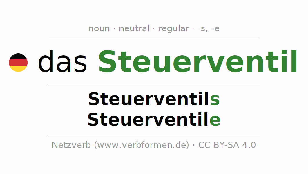 - Plural: die Steuerventile, der Steuerventile, den Steuerventilen, die Steuerventile