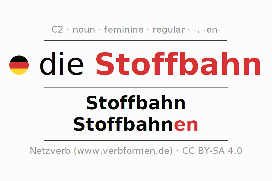 - Singular: die Stoffbahn, der Stoffbahn, der Stoffbahn, die Stoffbahn