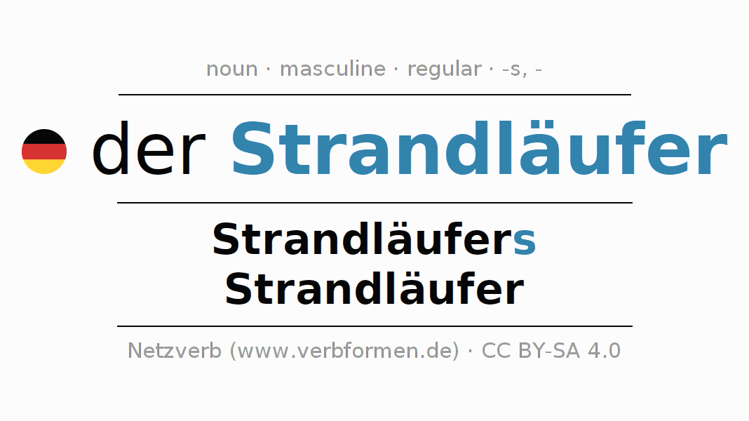 - Singular: der Strandläufer, des Strandläufers, dem Strandläufer, den Strandläufer