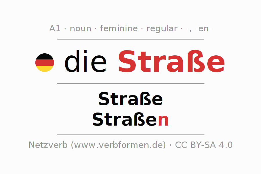 - Plural: die Straßen, der Straßen, den Straßen, die Straßen