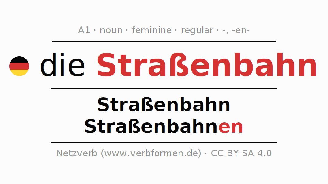 - Singular: die Straßenbahn, der Straßenbahn, der Straßenbahn, die Straßenbahn