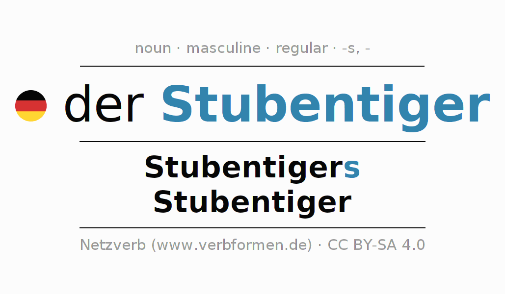 - Singular: der Stubentiger, des Stubentigers, dem Stubentiger, den Stubentiger