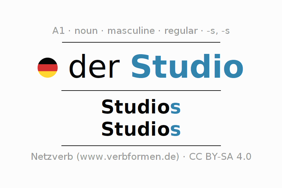 - Singular: der Studio, des Studios, dem Studio, den Studio