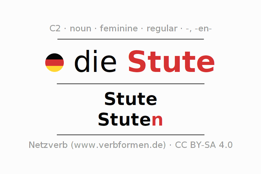 - Plural: die Stuten, der Stuten, den Stuten, die Stuten