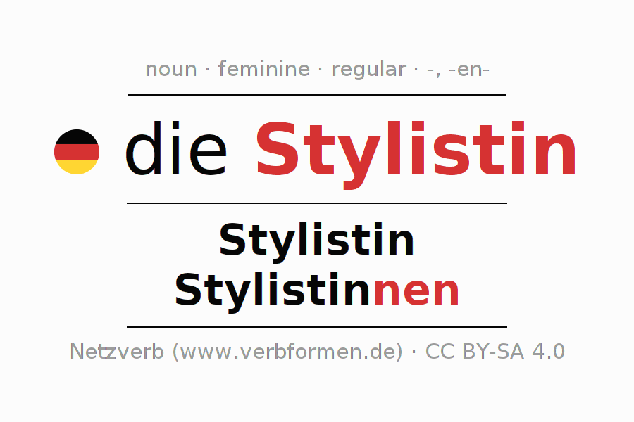 - Singular: die Stylistin, der Stylistin, der Stylistin, die Stylistin