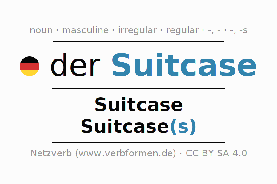 - Plural: die Suitcase(s), der Suitcase(s), den Suitcase(s), die Suitcase(s)