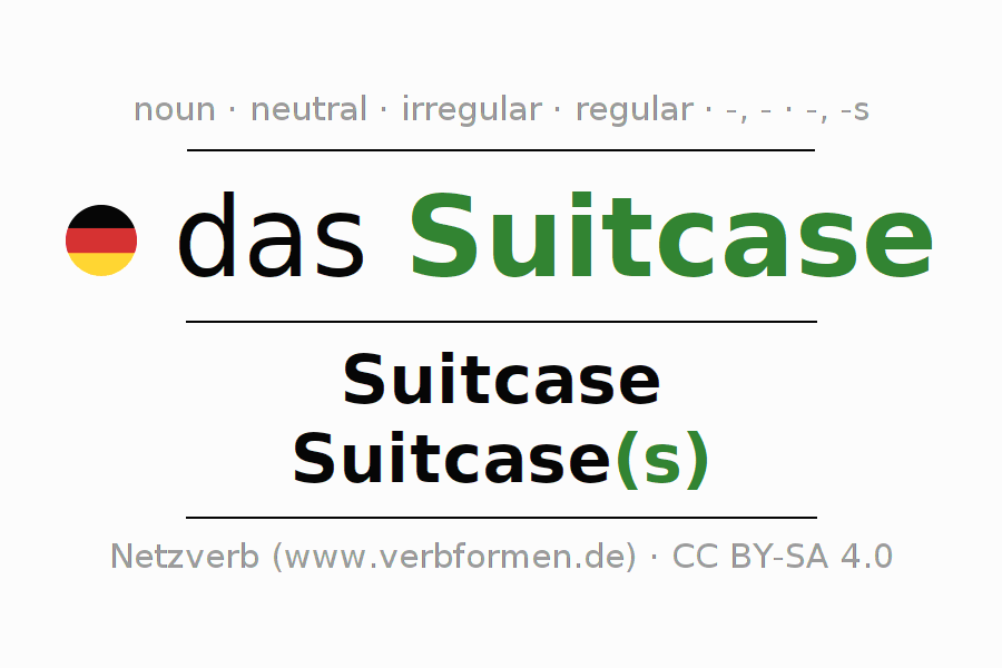 - Plural: die Suitcase(s), der Suitcase(s), den Suitcase(s), die Suitcase(s)