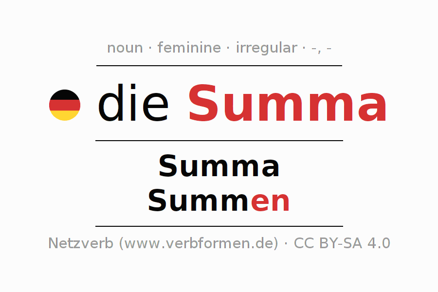 - Plural: die Summen, der Summen, den Summen, die Summen