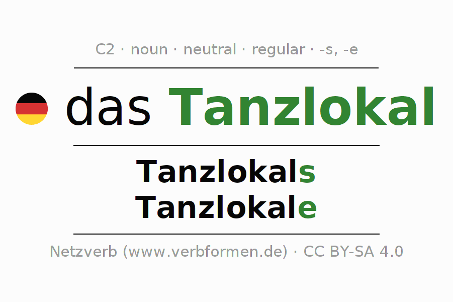 - Singular: das Tanzlokal, des Tanzlokals, dem Tanzlokal, das Tanzlokal