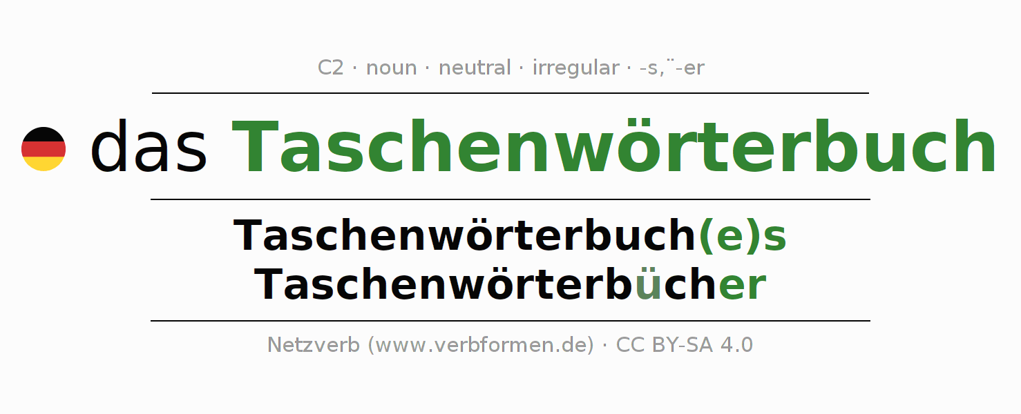 | Dat. | dem Taschenwörterbuch(e) | den Taschenwörterbüchern |