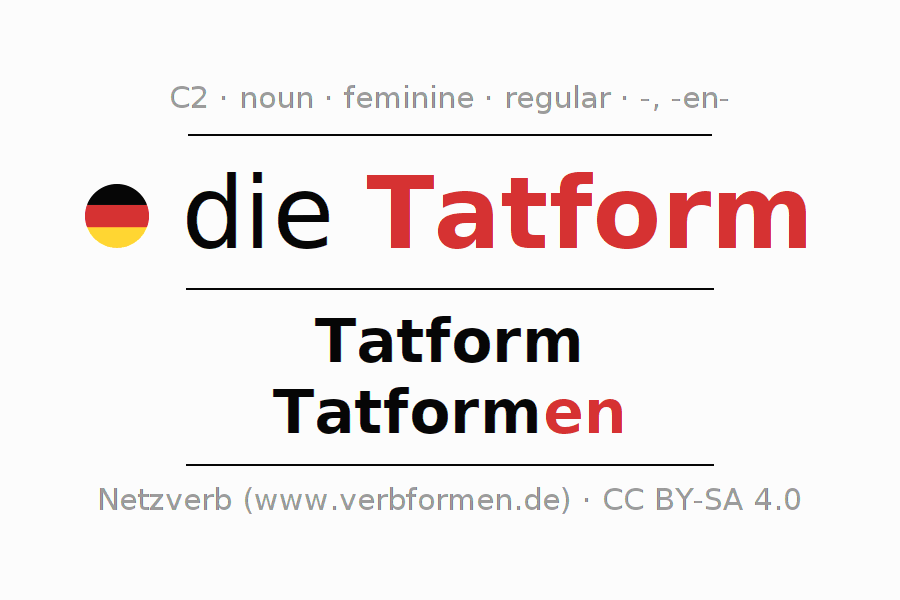 - Plural: die Tatformen, der Tatformen, den Tatformen, die Tatformen