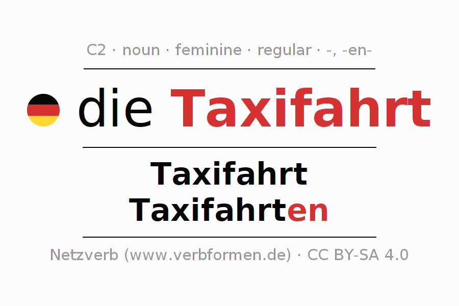 - Singular: die Taxifahrt, der Taxifahrt, der Taxifahrt, die Taxifahrt