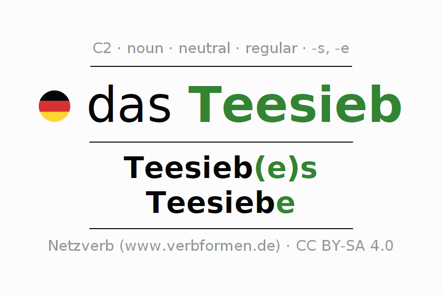 - Plural: die Teesiebe, der Teesiebe, den Teesieben, die Teesiebe