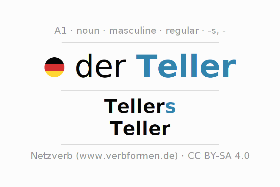- Plural: die Teller, der Teller, den Tellern, die Teller