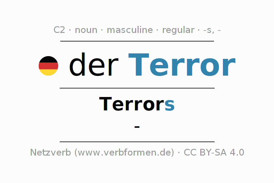 - Singular: der Terror, des Terrors, dem Terror, den Terror