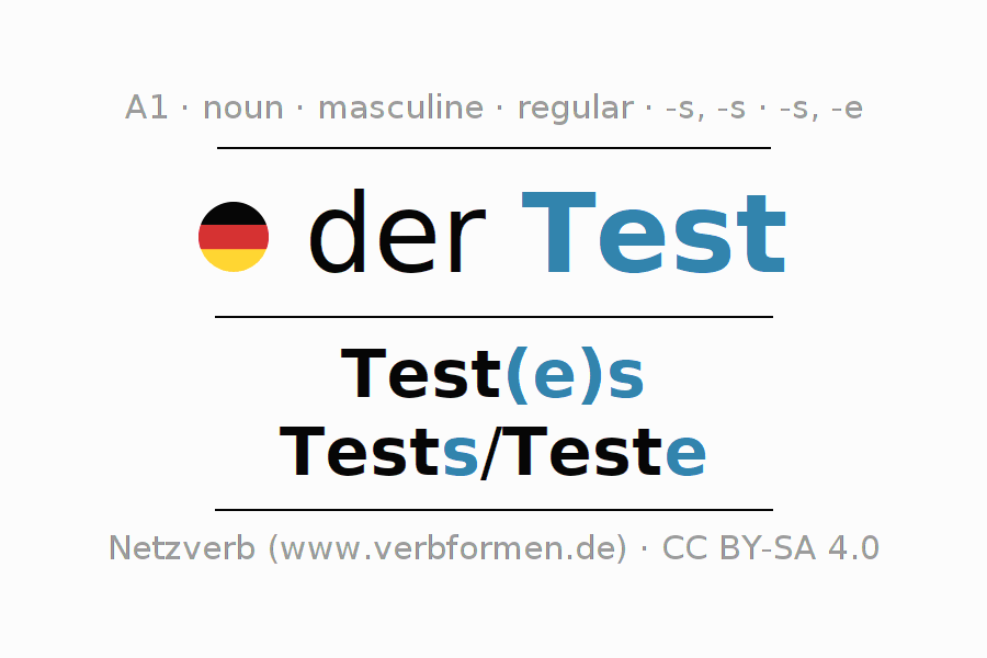 - Plural: die Tests/Teste, der Tests/Teste, den Tests/Testen, die Tests/Teste