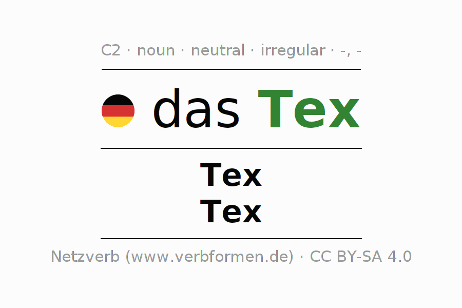 - Singular: das Tex, des Tex, dem Tex, das Tex